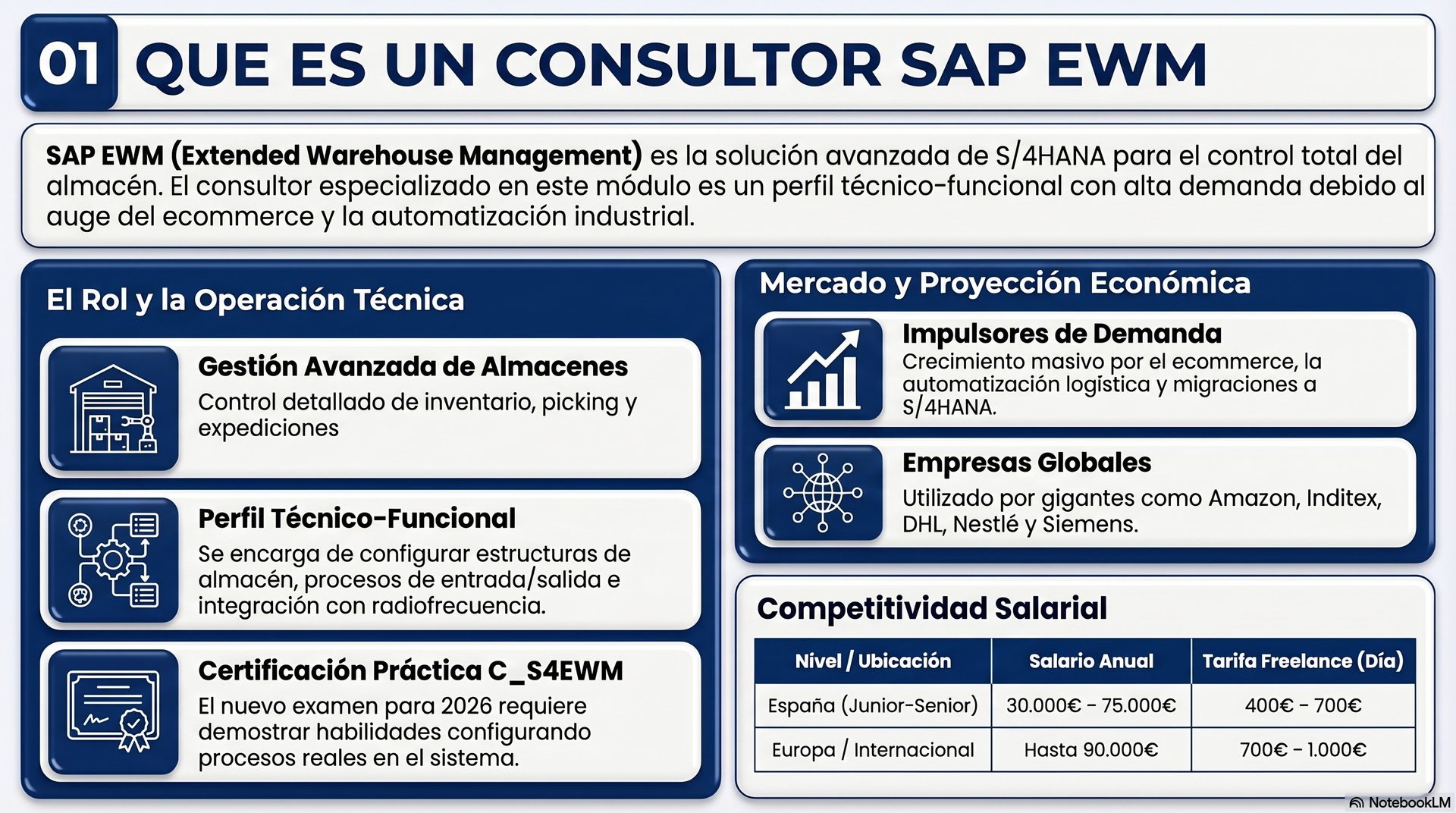 Descubrirás qué hace un consultor SAP EWM en su día a día, cuánto puede ganar, qué certificaciones existen y qué necesitas para conseguir tu primer trabajo en SAP.
